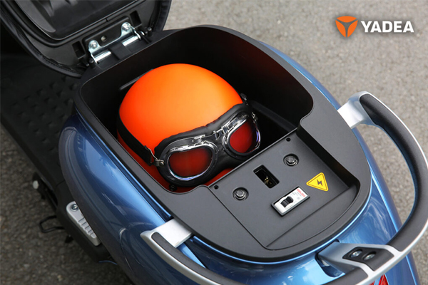 Bên cạnh đó, YADEA E3 còn trang bị nhiều linh kiện cao cấp. Hệ thống phanh đĩa, cổng sạc USB, smartkey bảo vệ xe an toàn 24/24, cùng cốp siêu rộng lên đến 20 lít.